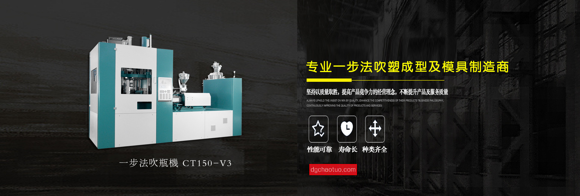 東莞超拓機(jī)械有限公司是一家專業(yè)設(shè)計(jì)生產(chǎn)一步法注吹機(jī)及相關(guān)配套模具的制造企業(yè), 公司自成立至今,始終以市場(chǎng)為導(dǎo)向、科技為基礎(chǔ)、質(zhì)量第一、用戶至上為服務(wù)宗旨,并一直在跟進(jìn)和學(xué)習(xí)世界上先進(jìn)的“注拉吹”中空成型技術(shù)專業(yè)領(lǐng)域配件制造和檢驗(yàn)技術(shù),不斷地創(chuàng)新求異,其中PPSU奶瓶領(lǐng)先國(guó)內(nèi)同行業(yè),堅(jiān)持“超越拓展,品質(zhì)保證”的企業(yè)文化理念,為客戶提供上乘服務(wù)。公司總經(jīng)理姜業(yè)東攜全體員工衷心感謝新老客戶的支持和關(guān)愛,竭誠(chéng)歡迎各位朋友蒞臨指導(dǎo)與合作,共圖發(fā)展。